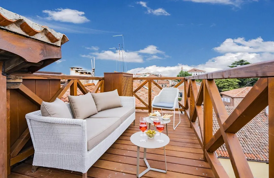 Die 4-Zimmer-Ferienwohnung Ca' Dell'Opera Terrace - Dimora Italia - Venedig bietet einen Blick auf die Straße und liegt 6 Minuten Gehweg von der Santa Maria della Salute entfernt.